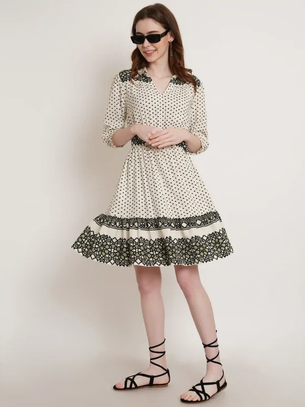 Off white cotton abstract print Dress for women.