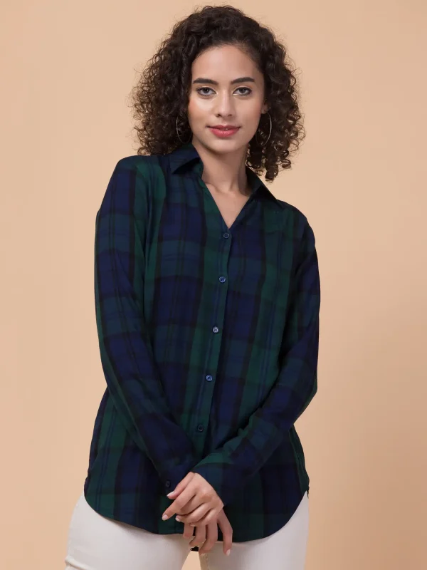 Women’s Green and or Rayon Plaid Shirt with Full Sleeves