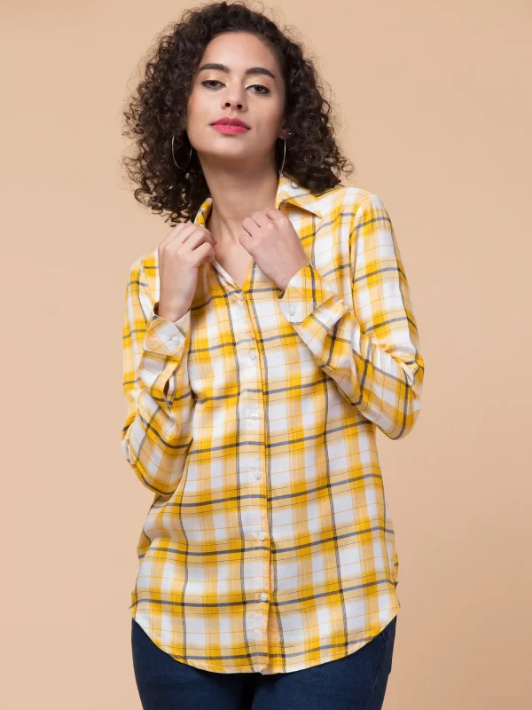 Women’s Sunny Yellow Rayon Plaid Shirt