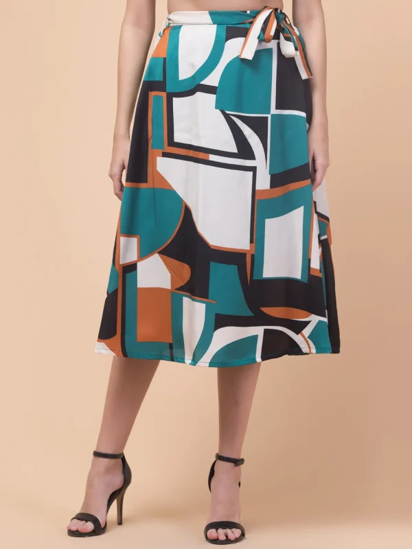 Women’s Green Rayon Skirt with Unique Shell and Cross Line Motif