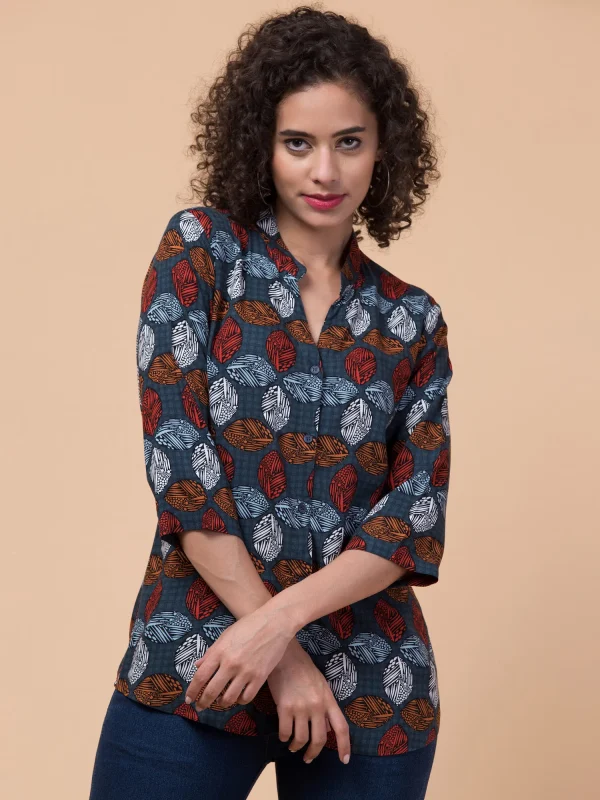 Women’s Multicolour Rayon Abstract Shirt Top with 3/4 Sleeves