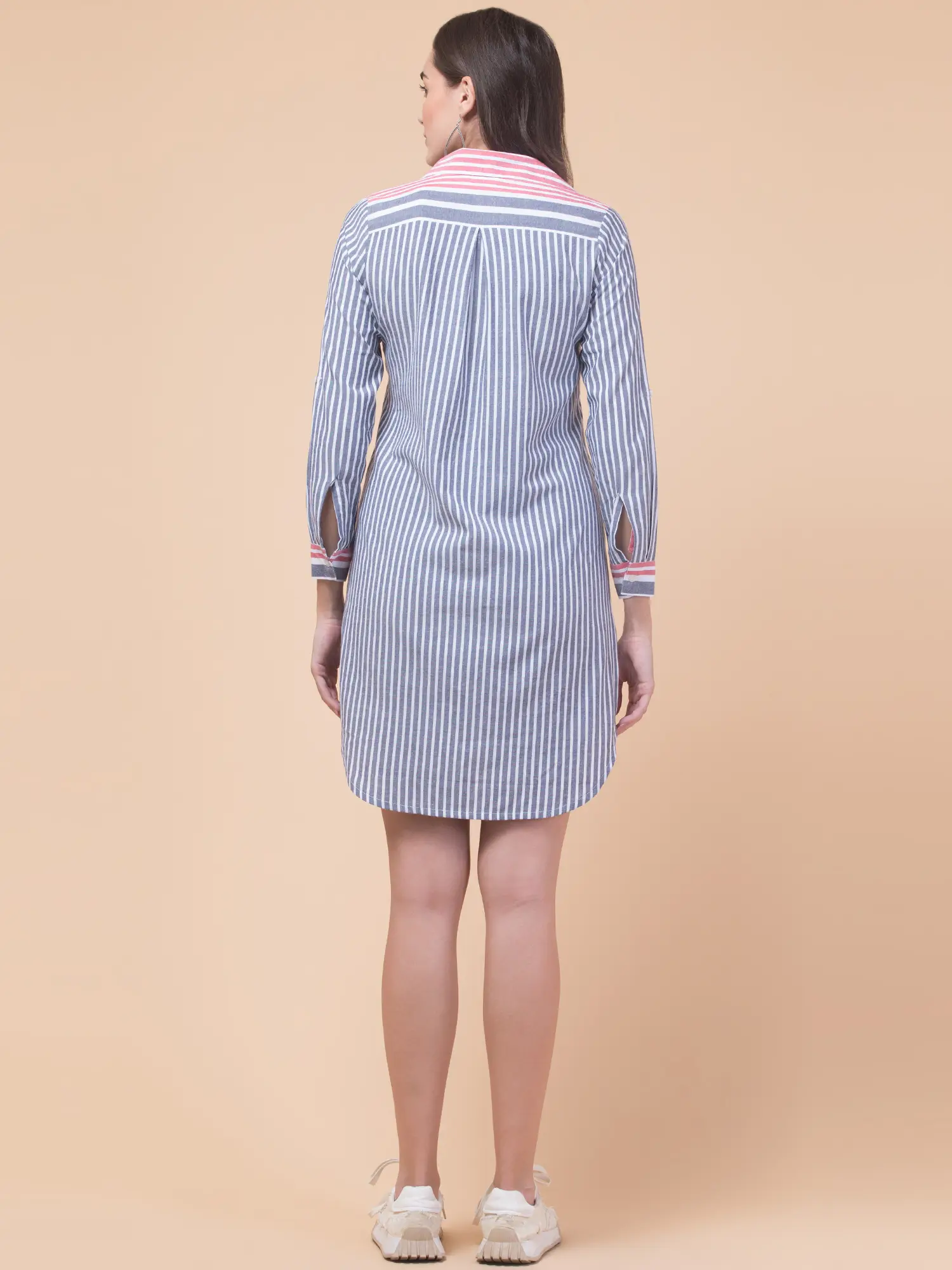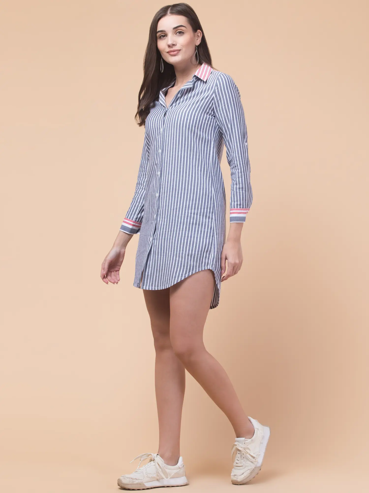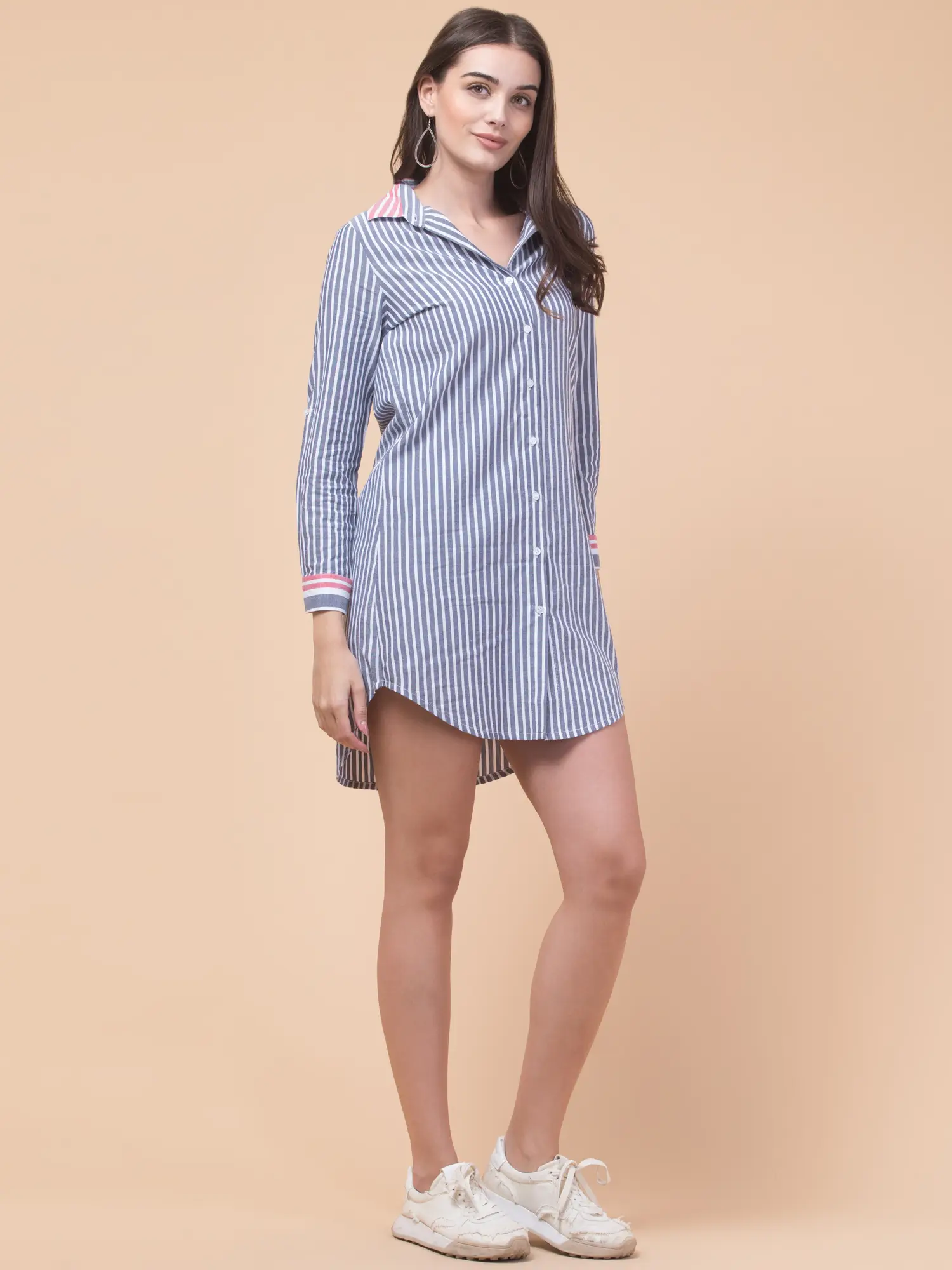 Step out in style with this elegant and comfortable Hive91 Women’s Grey Striped Shirt Dress. Made from premium rayon fabric, this lightweight and breathable dress is perfect for casual outings, vacations, and everyday wear. Featuring a classic button-down design, long sleeves, and a chic striped pattern, this versatile dress offers a flattering fit and modern vibe. Pair it with sneakers for a relaxed look or dress it up with heels for a sophisticated touch.