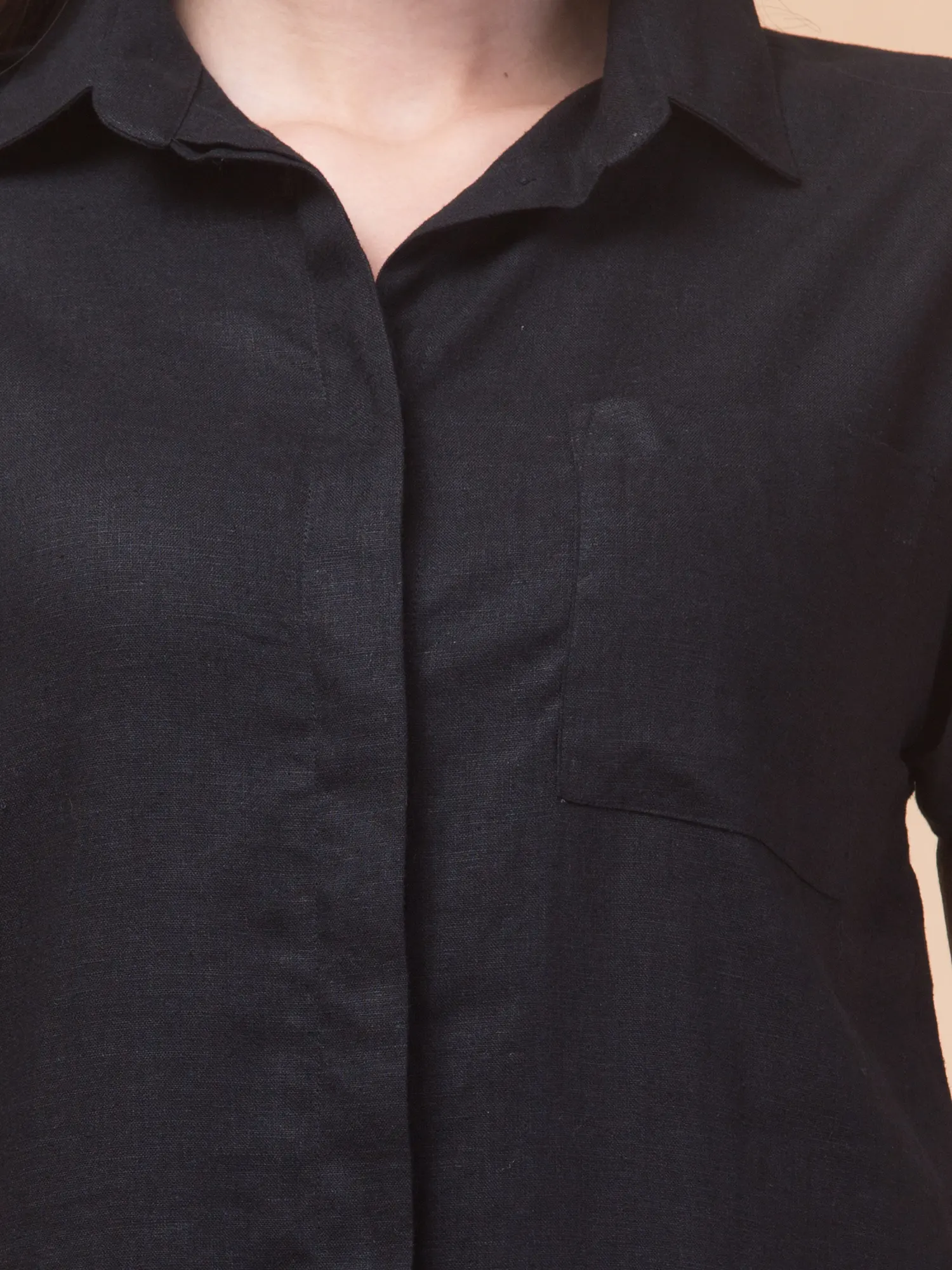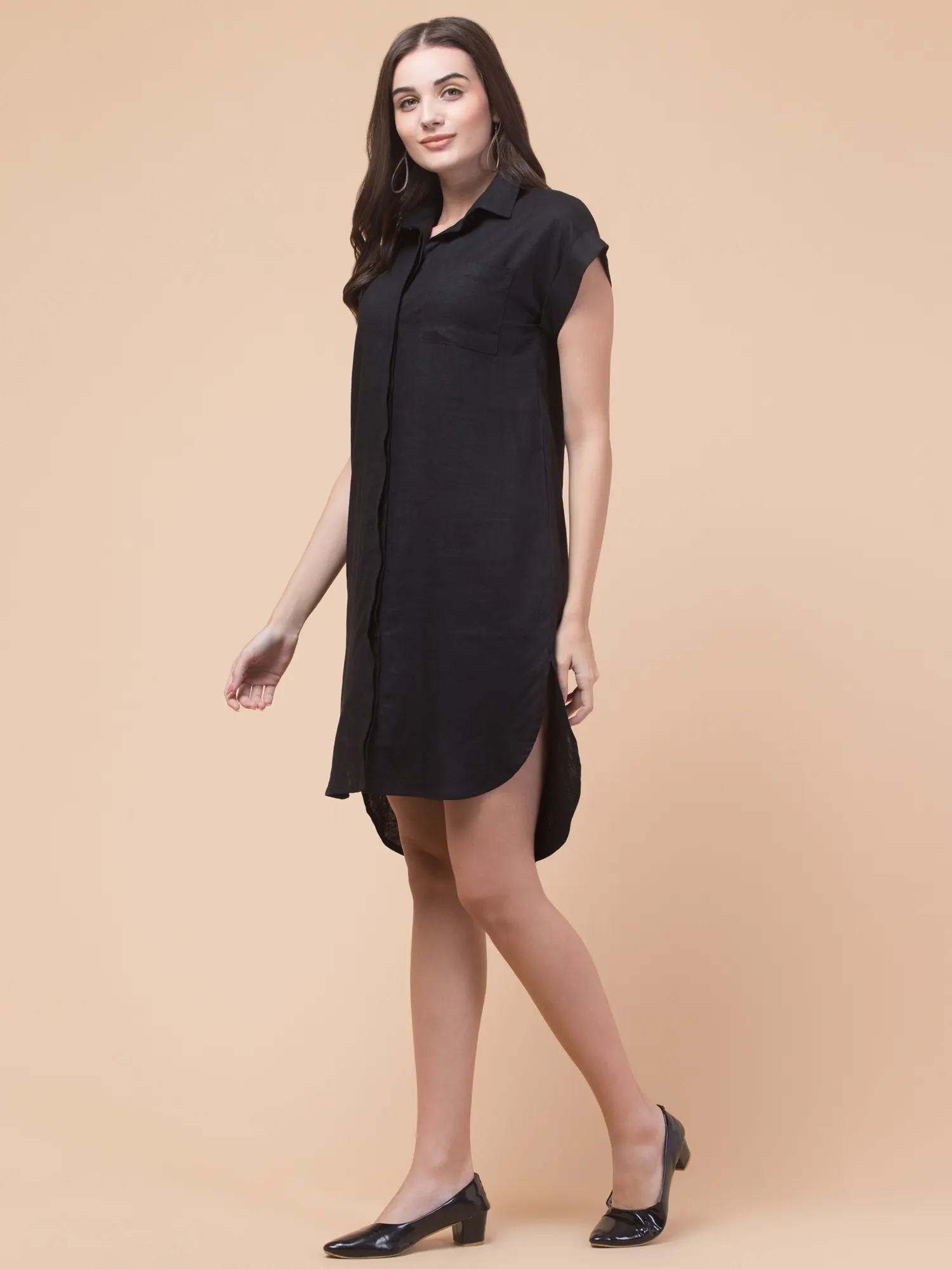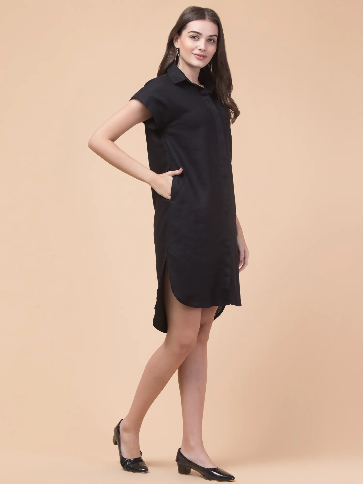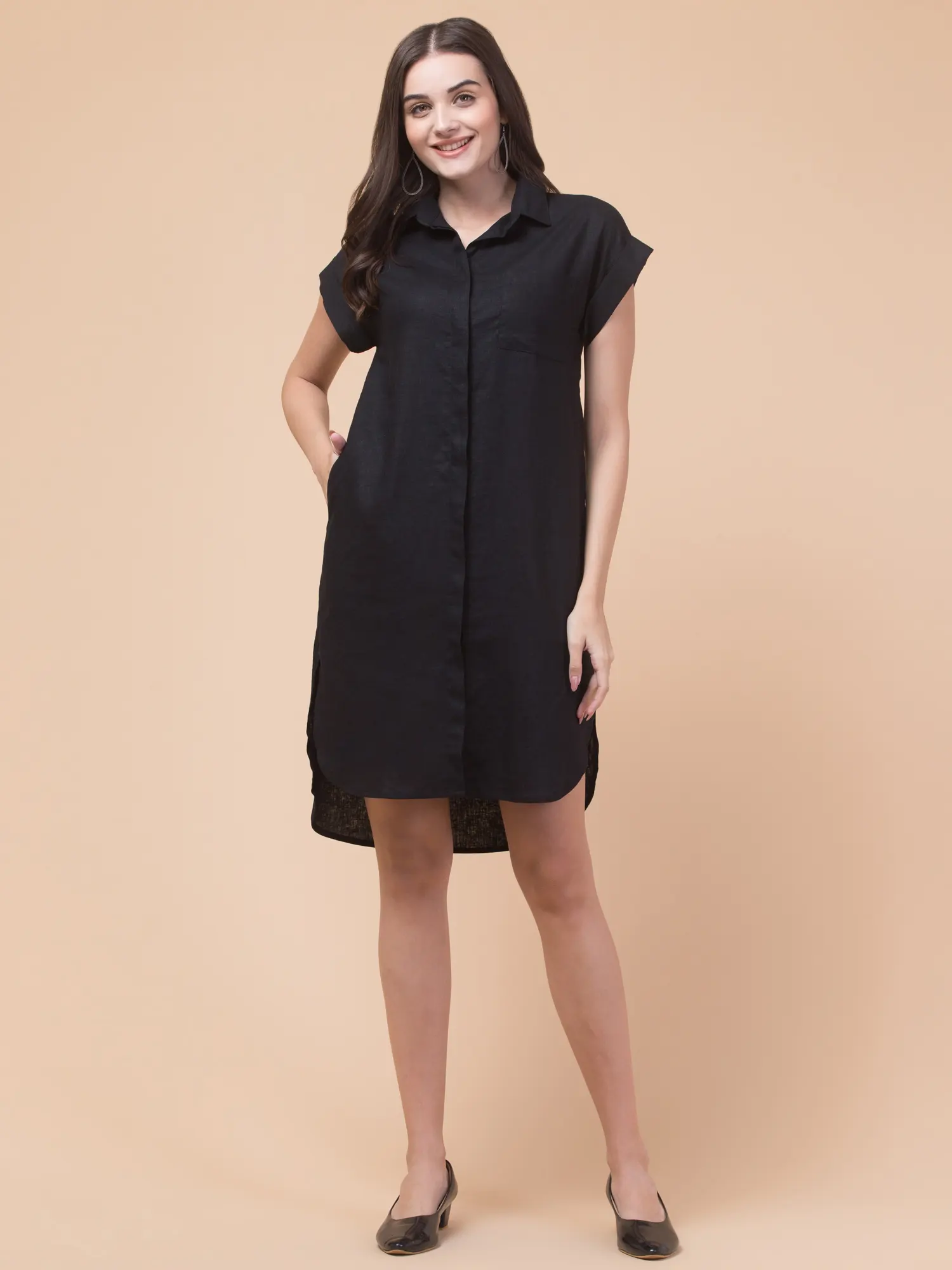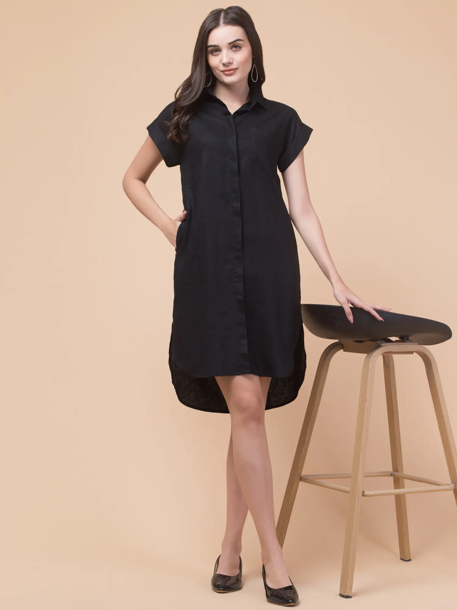 Elevate your everyday style with Hive91’s chic and comfortable black shirt dress. Crafted from a premium linen blend, this dress features a solid design that brings effortless elegance to any occasion. The classic shirt collar paired with short cap sleeves creates a structured yet feminine silhouette, making it a versatile piece for both casual and semi-formal settings. Whether you’re heading to brunch, work, or an evening out, this timeless dress is your go-to wardrobe staple.