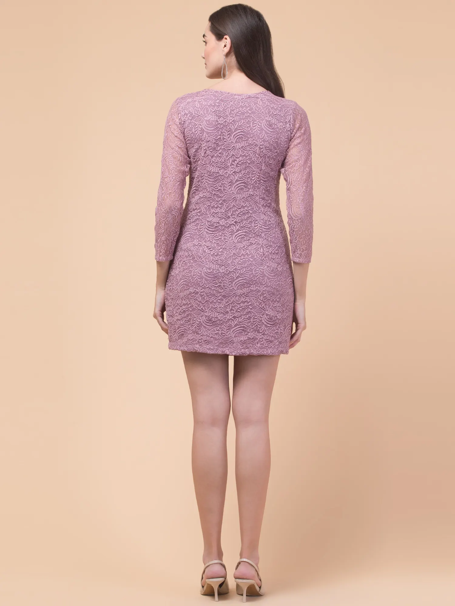 Embrace elegance in this Wine bodycon mini dress, designed with stretch net fabric for a flattering fit. The floral botanical pattern adds a feminine touch, while the 3/4 sleeves enhance its sophisticated charm. Perfect for evening outings or special occasions, this stylish mini dress offers both comfort and a chic, modern appeal
