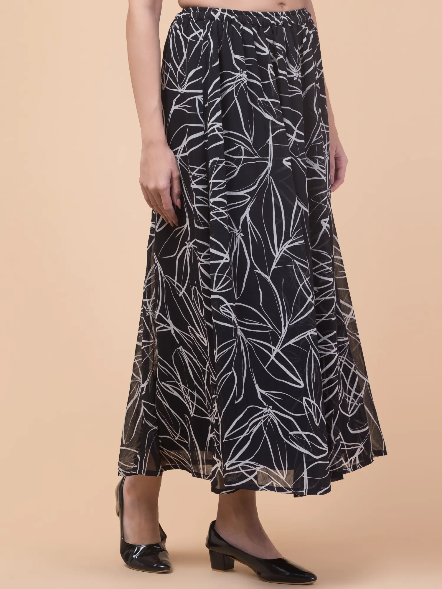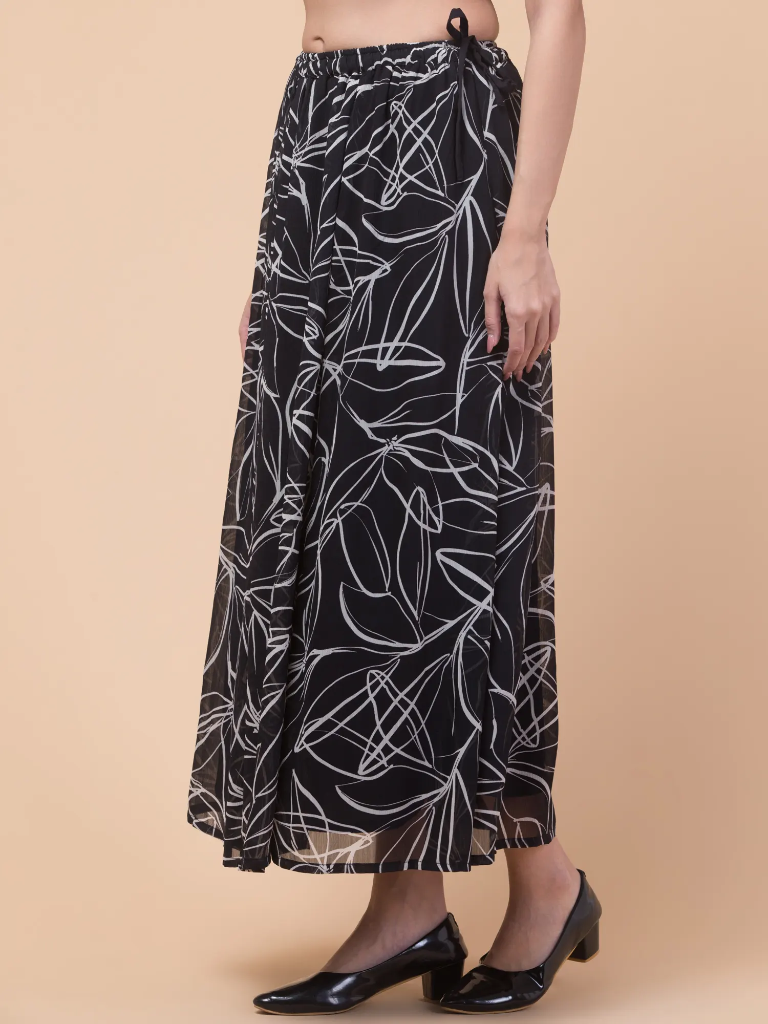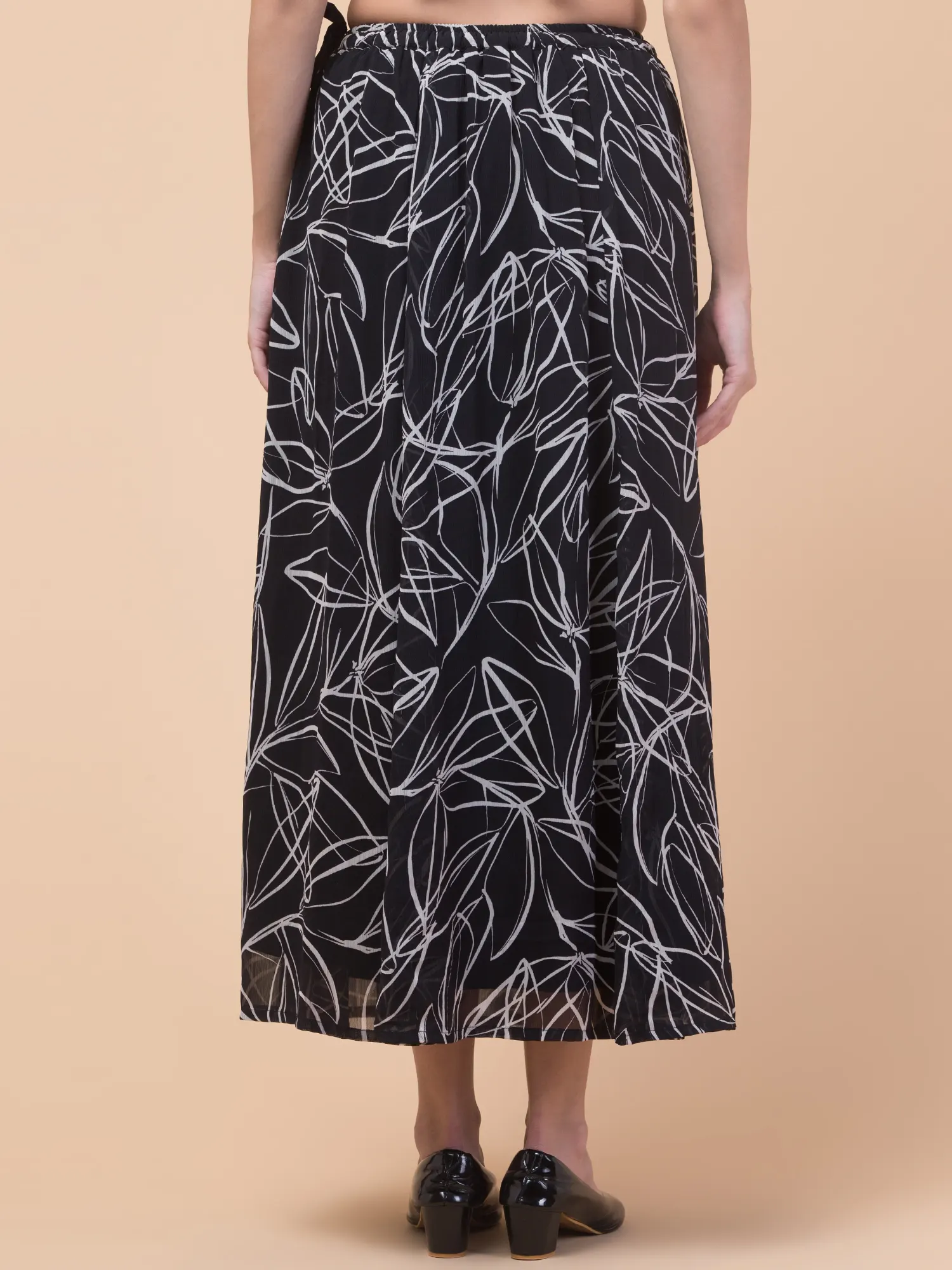 Upgrade your wardrobe with the Hive91 Women’s Black Chiffon Long Skirt, designed for comfort and effortless style. Crafted from lightweight, flowy chiffon fabric, this ankle-length skirt features a chic white abstract leaf print that adds a touch of elegance. The elastic waistband with a side drawstring tie ensures a perfect, adjustable fit for all-day comfort. Pair it with a simple top and heels or flats for a relaxed yet sophisticated look, perfect for casual outings, brunches, or even semi-formal events.