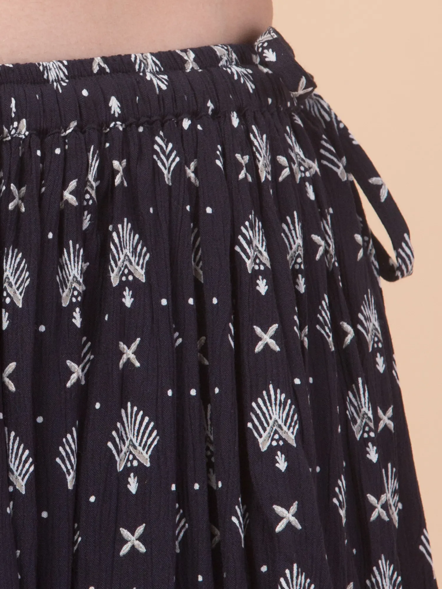 Be the first to review “Women’s Black Rayon Skirt with White Geometric and Floral Prints”